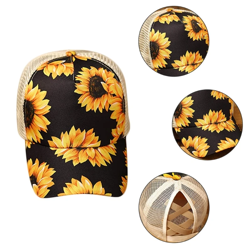 Correcto artículo y envío rápidamente. vendedor recomendado para Gorra de béisbol de malla con diseño de girasol a rayas multicolor con cola de caballo y hueco entrecruzado sombrero de papá